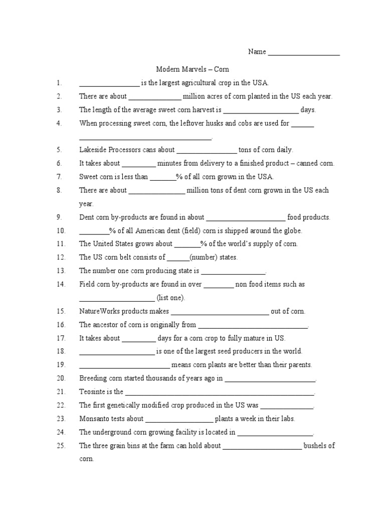 Modern Marvels Harvesting 2 Worksheet